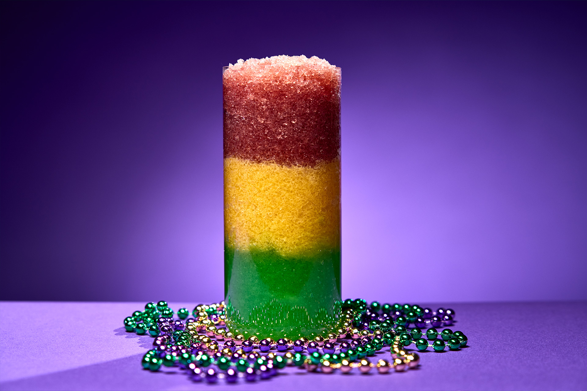 Layering of King Gator Margarita, Canal Street Colada, and Bourbon Street Blast- Krewe Cup – $16